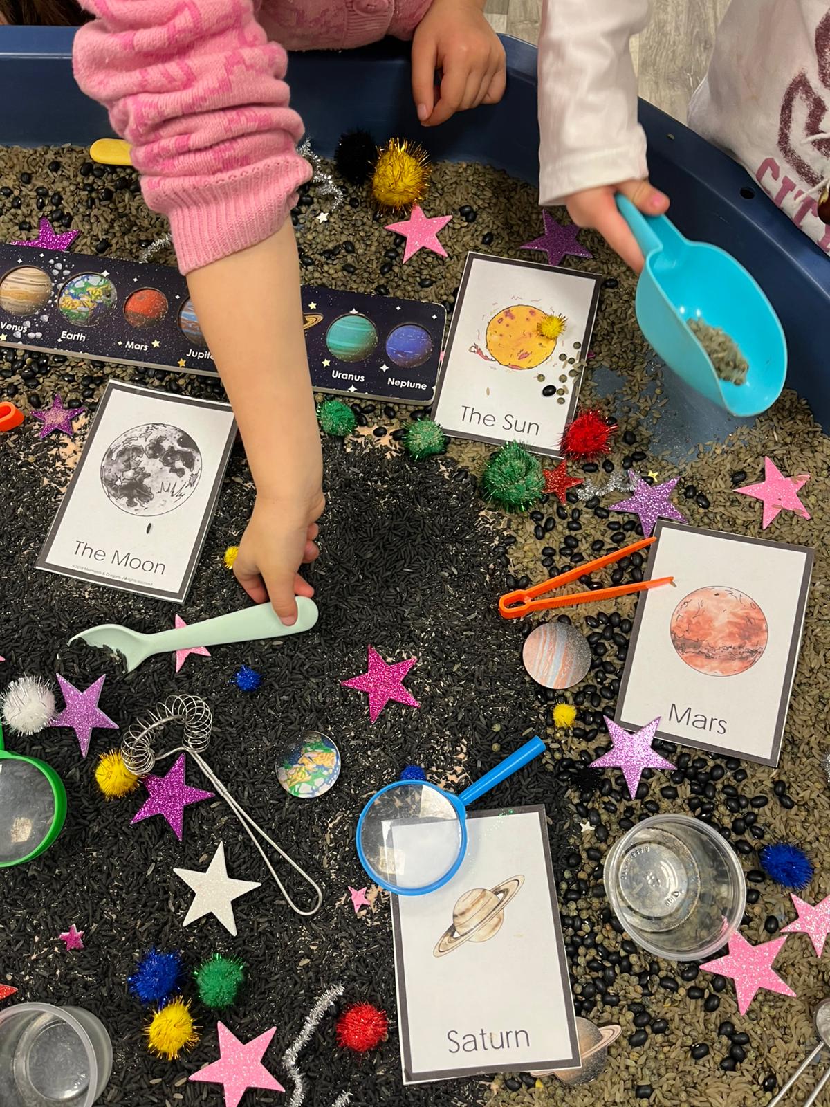 We follow a blended curriculum using some elements from Montessori curriculum and recognising the importance of child led activities. We place a huge emphasis on sensory play for the one to three year old as we feel they really enjoy it and they learn best when they are happy.